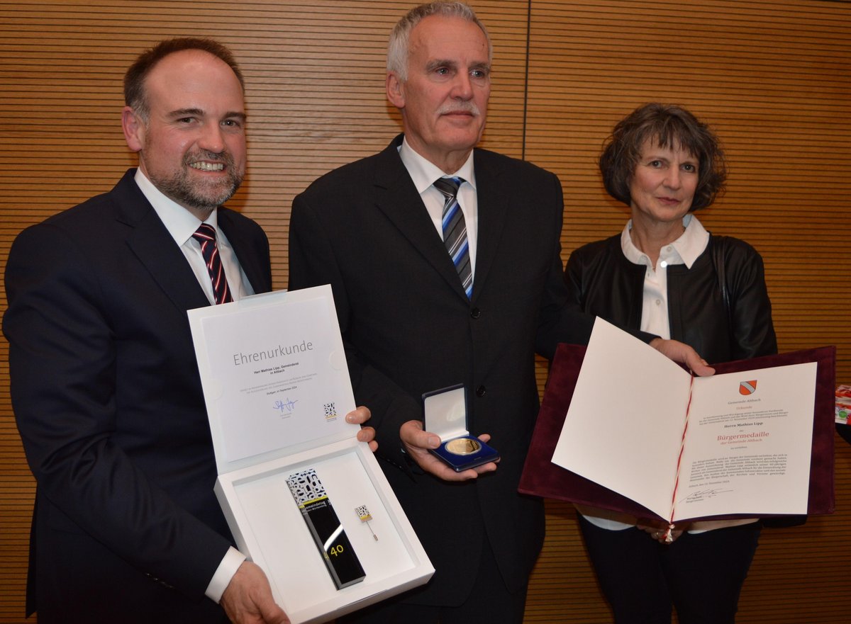 Am 10. Dezember wurde feierlich die Bürgermedaille an Gemeinderat Matthias Lipp für sein 40-jähriges ehrenamtliches Engagement im Gemeinderat verliehen.