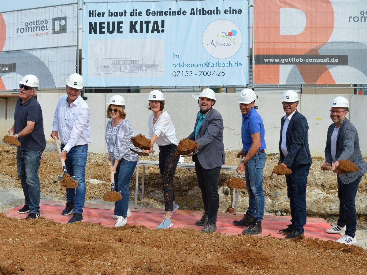 Der symbolische Spatenstich wurde am 10. Juni in Altbach für den Neubau der Kindertageseinrichtung auf dem Gelände des alten Schulhauses gefeiert.